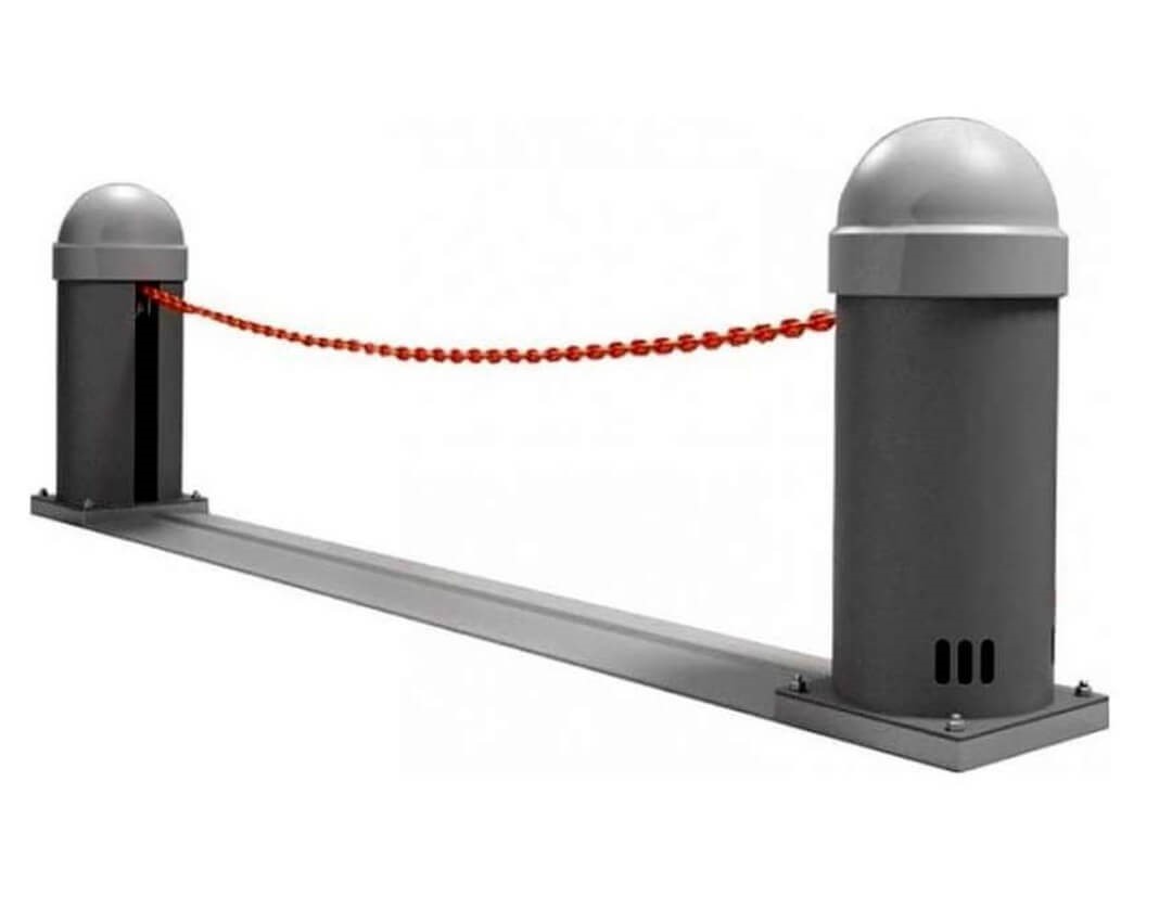 Цепной барьер CHAIN-BARRIER PRO, способный перекрывать проезд шириной до 15 м, отлично подходит для организации контролируемого въезда на огражденную территорию.